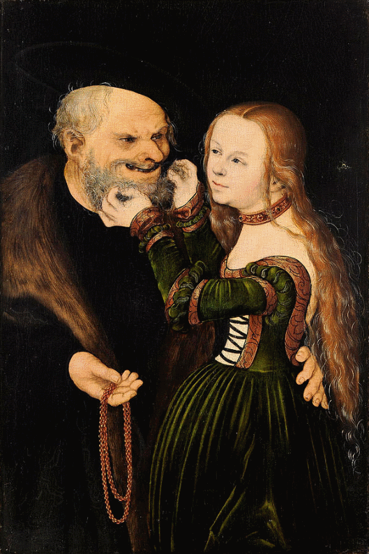 Глядя на "возрастную разницу" Гордона и его супруги, вспомнился популярный сюжет в живописи: "старость и молодость" .