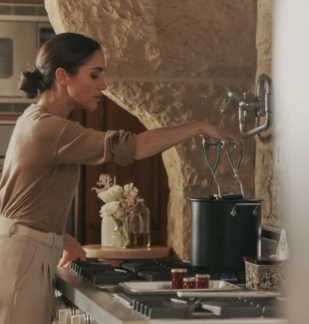 44-летняя Меган Маркл снова оказалась в центре насмешек. На странице её лайфстайл-бренда As Ever появилось фото, приуроченное к выпуску новой партии фирменных джемов. На снимке герцогиня Сассекская позирует на своей кухне в Монтесито, демонстрируя процесс консервирования. Но внимательные пользователи заметили, что Меган держит кухонные щипцы... вверх ногами.