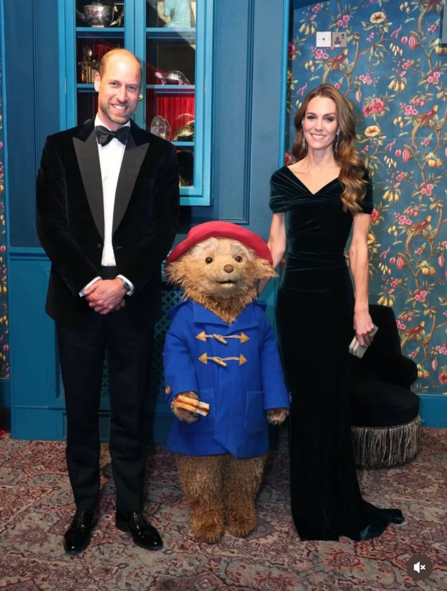 После представления принц и принцесса пообщались с артистами. Уильям с улыбкой сказал актёру в костюме Паддингтона: