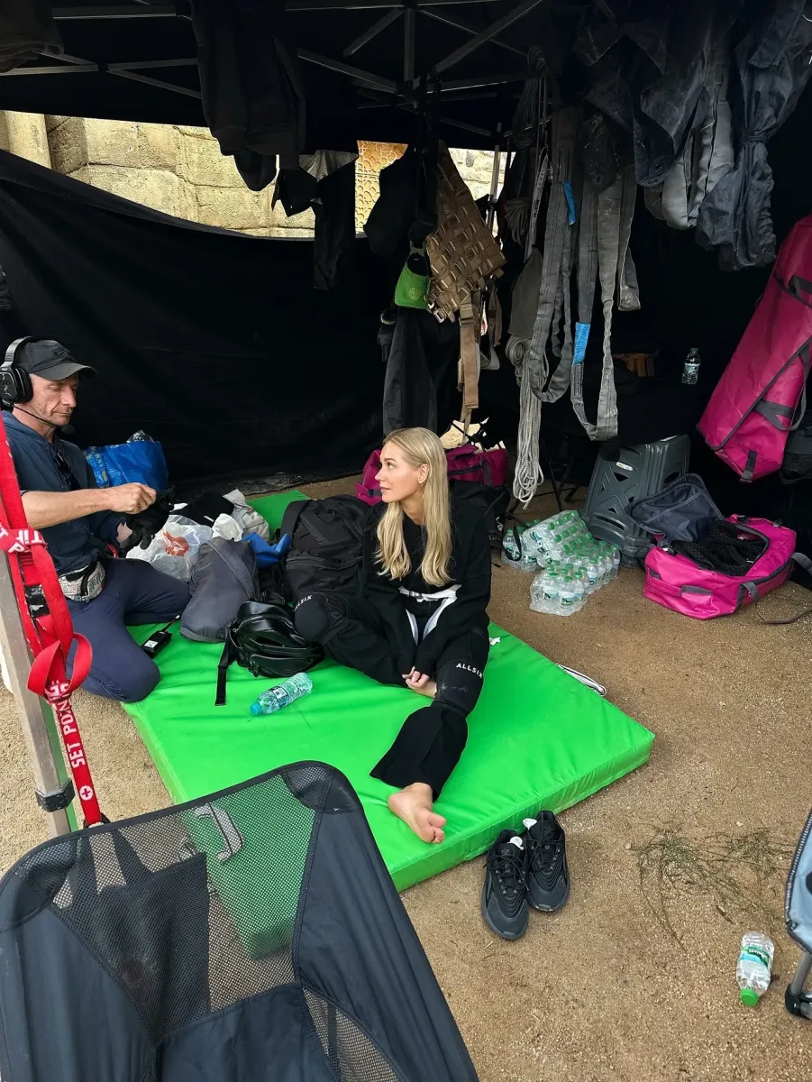«Каждый день (включая два месяца репетиций) дежурит бригада скорой помощи + половина съёмочной группы и камеры на всех репетициях! Все трюки (кроме автомобильного) я выполняю сама, но огромная бригада каскадёров десятки раз проверяла их в разных погодных условиях и костюмах»,