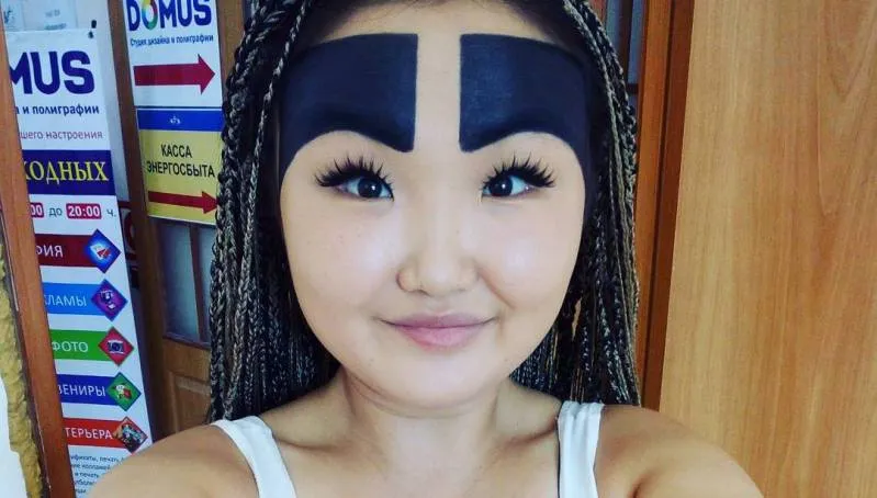 Дрянь..., Тетка хайповала на волне "соболиных бровей. Помните такой тренд - широкие брови, которые несколько лет назад, начесывали все модели и актрисы? Даже пересадку бровей рекламировали. Она так не ходит каждый день, а просто в инсте пародию постила.