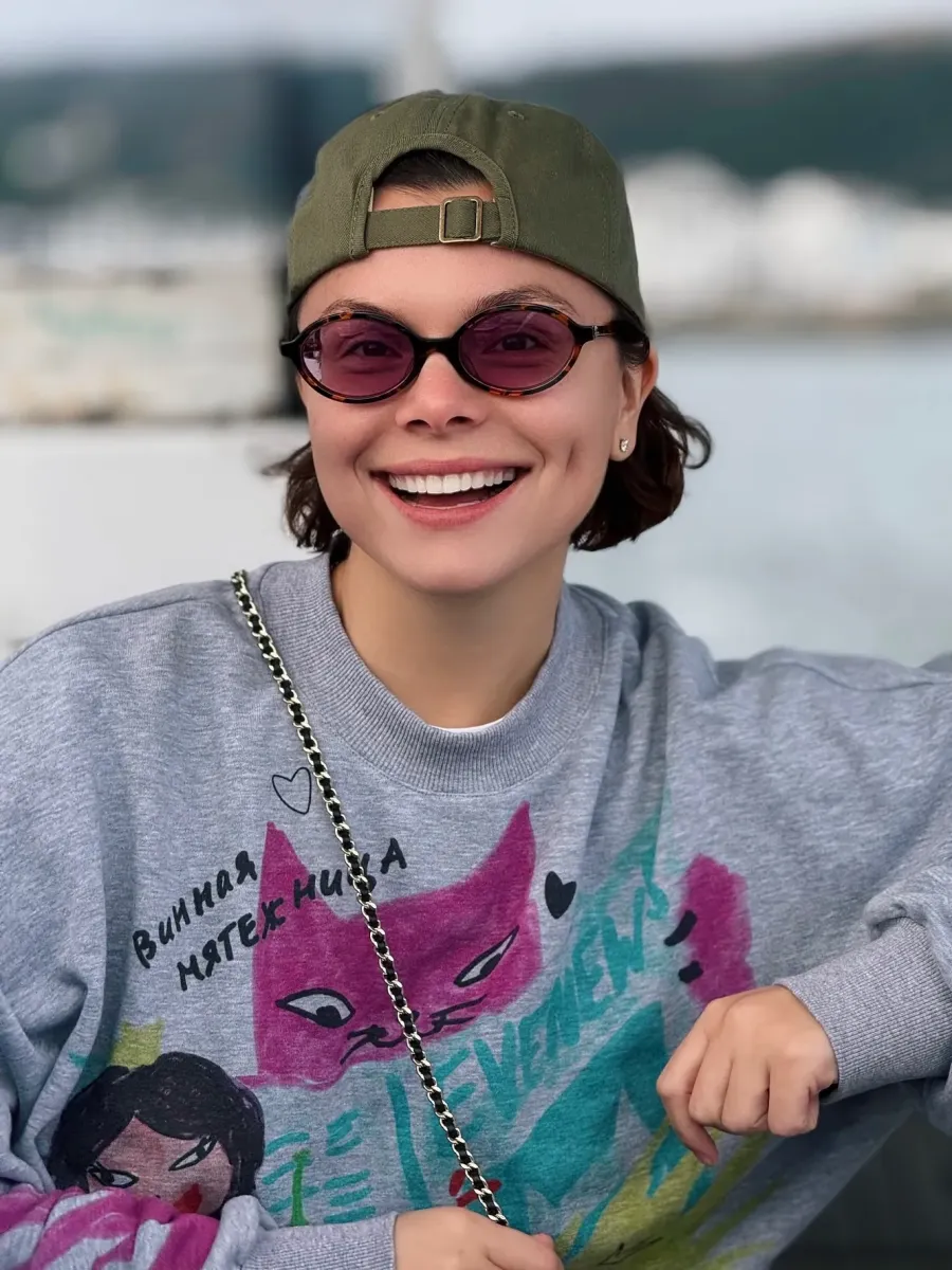 Жена юмориста показала первые кадры из поездки: красивые африканские пейзажи, уютный номер отеля и свой расслабленный образ — серая толстовка с ярким принтом, бейсболка, надетая козырьком назад, и очки с леопардовым узором.