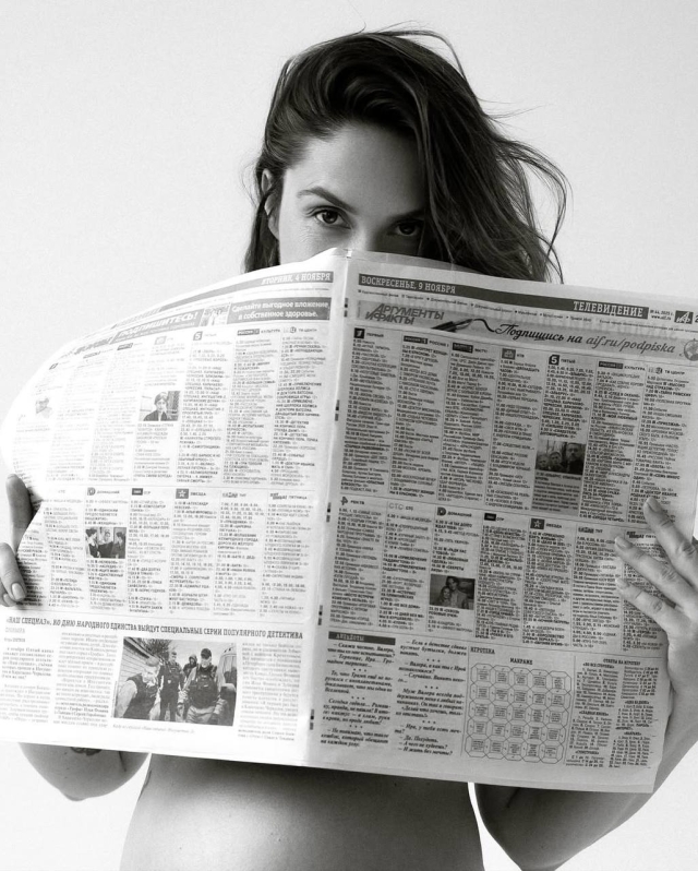 Вот реально у меня возникают вопросы когда вижу такие фотосессии, вы может себе представить, например беременную Марго Робби с газеткой на которой написано по русски "Ребенок скоро родится"? Что не так то с великим , могучим и богатым, слов не нашли? Или для Агаты английский родной язык? Вангую, ребенка назовут или Жан-Клод Петрович Дранга или по классике - Шарлотта Петровна Дранга, ну или опять какая то Симба