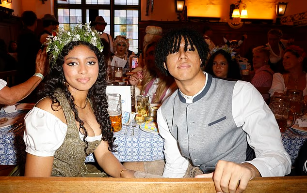 # 52-летняя модель Хайди Клум со всем своим большим семейством на собственном фестивале HeidiFest в мюнхенском ресторане Hofbräuhaus, Германия