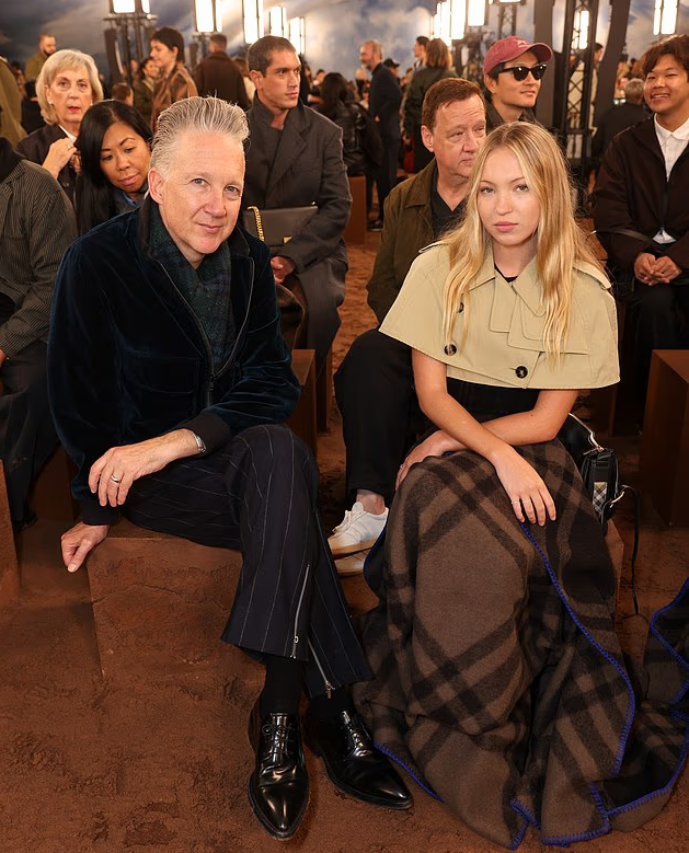 С отцом на презентации последней коллекции Burberry на стадионе Perks Field