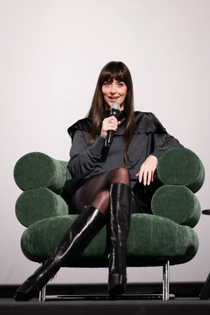 Dakota Johnson носила те же сапоги в прошлом месяце на 21-м кинофестивале в Цюрихе в Швейцарии.