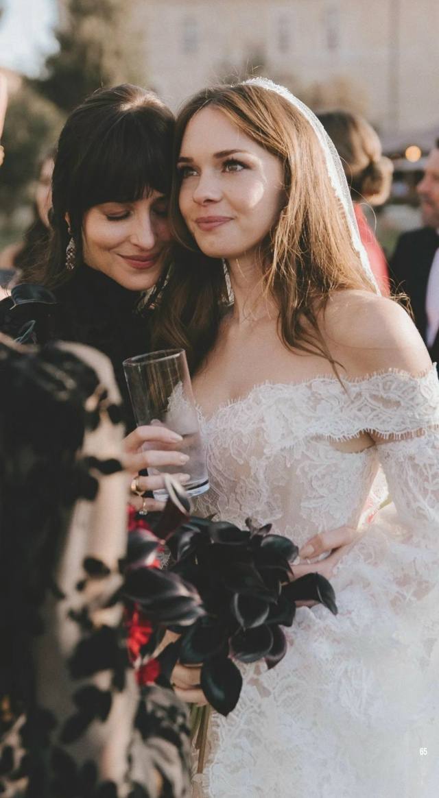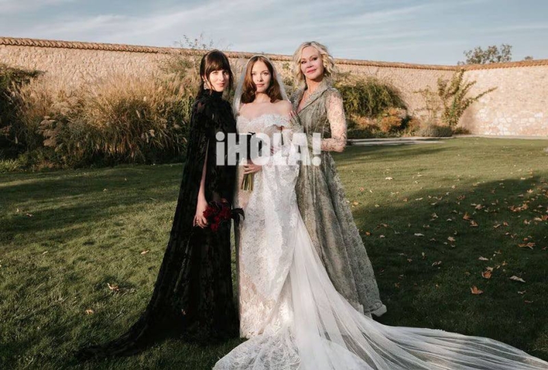 Церемония бракосочетания, проходившая на фоне виноградников и под лучами закатного солнца, стала настоящим модным событием. Невеста выбрала для своего образа платье от Rodarte, специально созданное для нее. Белоснежное, с открытыми плечами и длинными рукавами, оно было вдохновлено испанскими нарядами начала XX века, но при этом излучало современную чувственность.