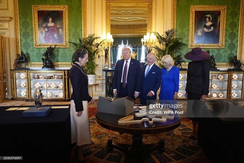 Король Карл и королева консорт Камилла встречают Дональда Трампа и Меланию.