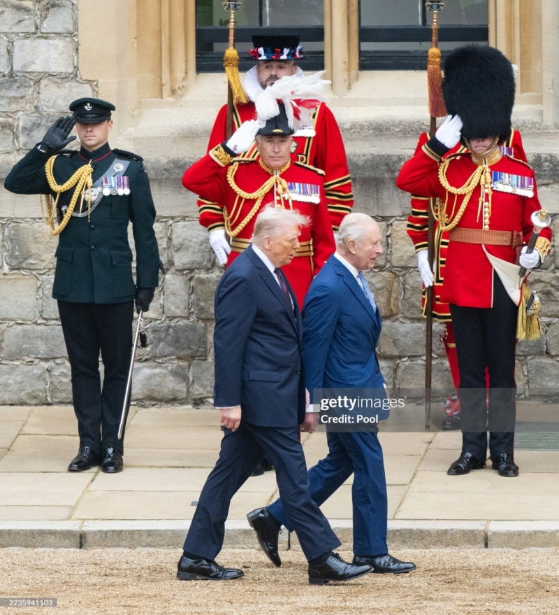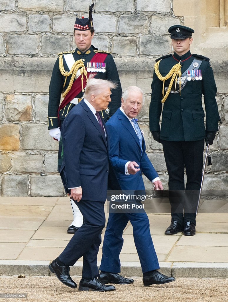 На следующий день Трамп прибыл в Виндзор на вертолете Marine One — это позывной самолет любого корпуса морской пехоты США. Встречали президента США и первую леди лично принц Уильям и его жена Кейт Миддлтон.