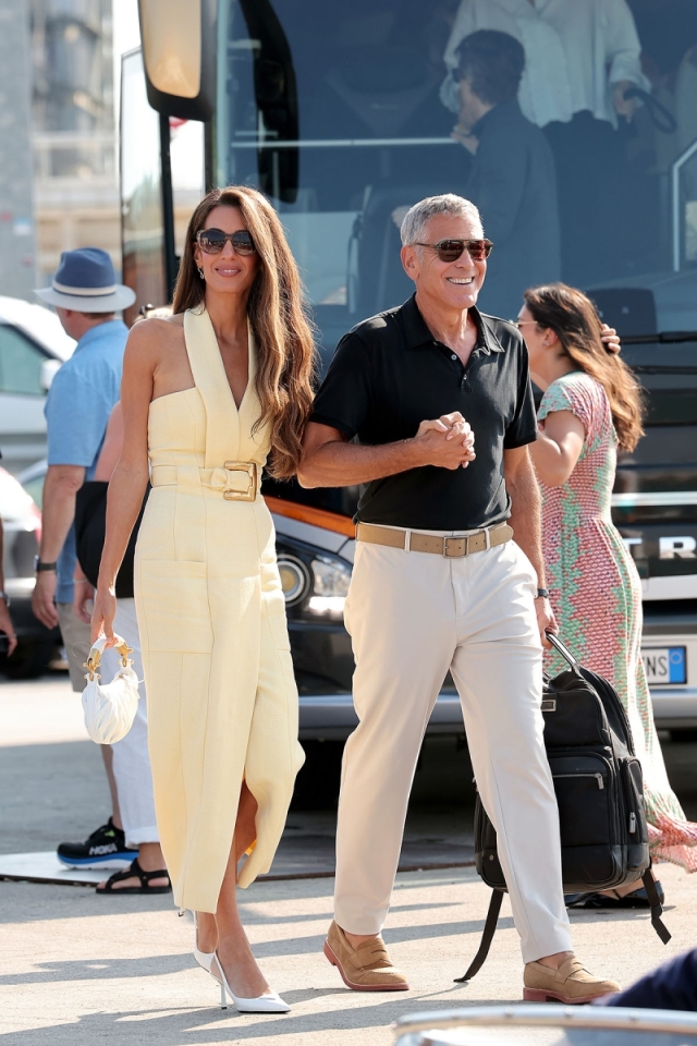 Amal Clooney в пастельно-желтом платье миди Balmain из коллекции Resort 2026. Фирменная пряжка, которая проходит через эту коллекцию, и тонкий вырез добавили идеальный намек на винтажный стиль, который, как мы знаем, обожает Амаль, не говоря уже о ее давней любви к желтому цвету. Амаль сочетала свое солнечное платье с шикарными солнцезащитными очками, белыми туфлями-лодочками и подходящей сумкой Balmain Ebene, создавая изысканный, непринужденно собранный момент, который кажется одновременно классическим и игривым.