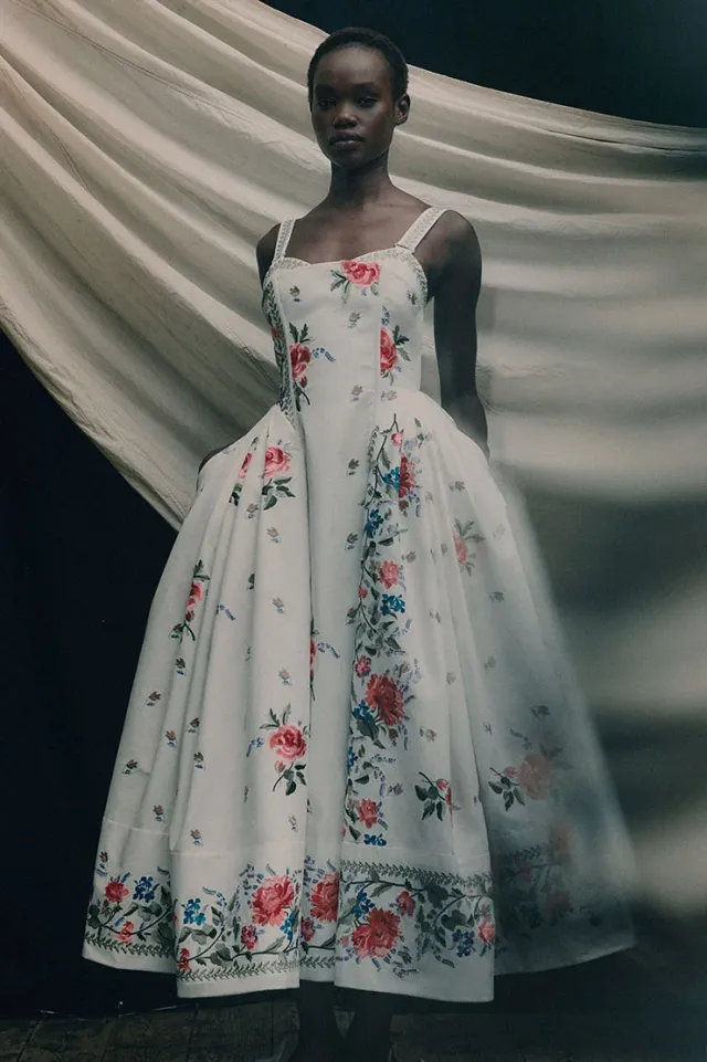 Eve Hewson посетила фотосессию в белом платье Erdem Resort 2026 с замысловатым ботаническим рисунком иллюстратора Maria Sibylla Merian. В нем был тонкий почерк Erdem — романтичный, женственный и мягко поэтичный, он казался достаточно современным для полуденного фотоколла. Слегка урезанный силуэт сделал его легким, удобным и непринужденным — как раз для послеобеденного момента в Венеции. Солнцезащитные очки в белой оправе и белые туфли-лодочки связали все воедино, достигнув идеального баланса между романтическими деталями и современной легкостью.