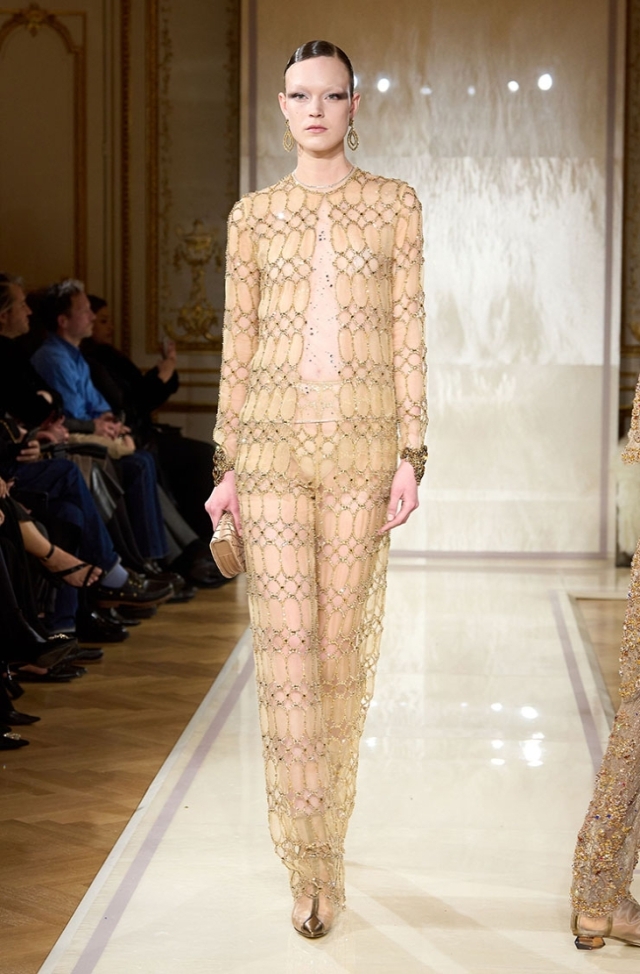 Fernanda Torres в накидке телесного цвета Armani Privé Spring 2025 и брюках в тон. После нескольких месяцев использования всего черного Фернанда была в одном из самых приглаженных образов вечера, ослепляющим украшениями, которые придавали наряду текстуру и блеск.