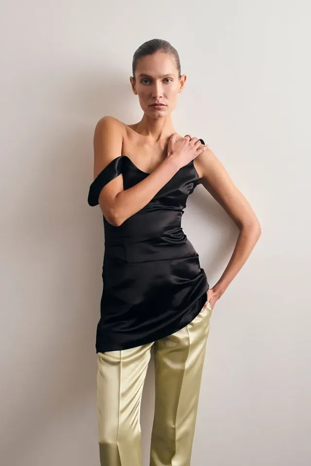 Shailene Woodley вместо размашистого шлейфа выбрала гладкое и короткое, очень короткое черное, атласное мини-платье Kallmeyer Eloise со сборками из коллекции бренда Pre-Fall 2025. И это сработало, так как Шейлин выглядела сенсационно. Мы уже видели этот стиль раньше. Айо Эдебири надела оригинальную версию еще в мае, а Зои Кравиц надела изготовленную на заказ розовую версию на афтепати Caught Stealing только на этой неделе. Тот факт, что оно уже неоднократно появлялся на крупных красных ковровых дорожках, означает, что оно находится на пути к тому, чтобы стать «тем» платьем 2025 года.