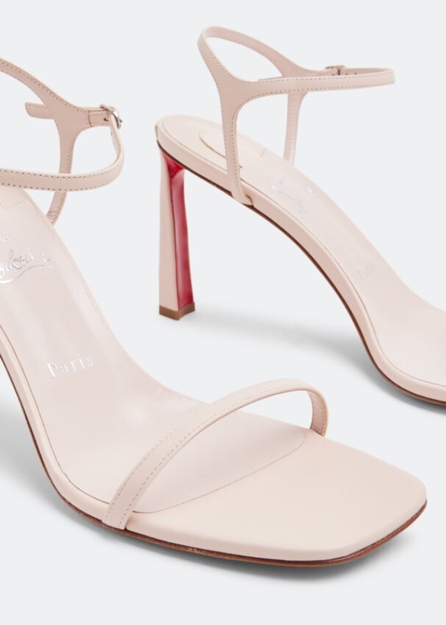 Завершающими штрихами стали босоножки Condora 85 от Christian Louboutin с изящным каблуком. Эта минималистичная модель, закрепленная регулируемой пряжкой на щиколотке для идеальной посадки, дополнена тонкими ремешками и фирменной красной подошвой, придающей дополнительный эффект.