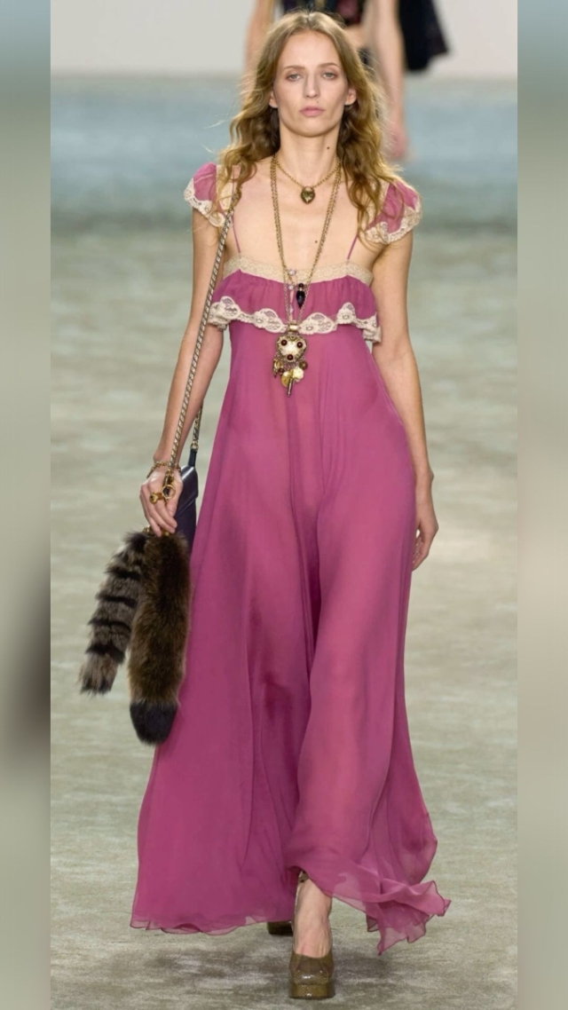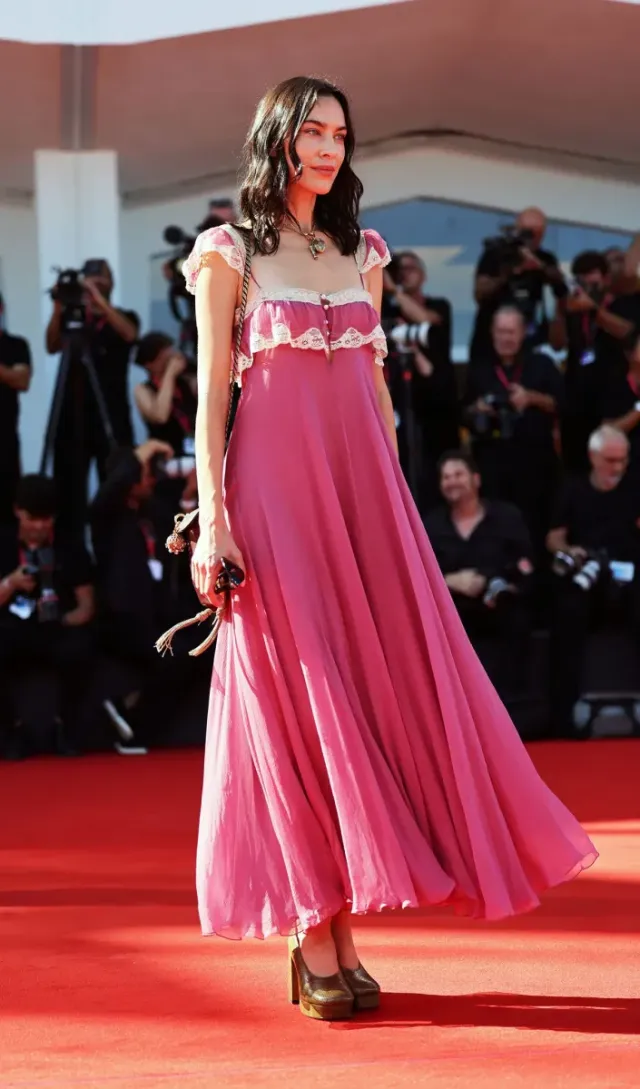 Alexa Chung пришла на премьеру фильма "The Wizard Of The Kremlin" на Венецианском кинофестивале, чтобы поддержать своего кавалера Tom Sturridge и выбрала то, что казалось ей полностью верным. Вместо широкого платья, которые мы видели доминирующими на красной ковровой дорожке в этом году, она надела розовое платье Chloé Fall 2025 с нежными деталями, отделанными кружевом. Романтичный, мягкий и слегка простоватый, в характерном для Alexa стиле, образ был похож на глоток свежего воздуха среди высокого гламура фестиваля. Она дополнила его туфлями-лодочками Chloé цвета хаки Loti и винтажным золотым ожерельем Château treasures, опираясь на классический стиль Chloé. Сумка Château treasures в стиле grenat через плечо, корпус из замши в стиле пэчворк и зернистой телячьей кожи с золотистой фурнитурой и подвеской сочеталась с ожерельем. Речь шла о том, чтобы проявить себя аутентично, комфортно и с чувством стиля, которое кажется ее визитной карточкой. Но все-таки это платье совершенно не подходит для красной дорожки в Венеции, даже если вы пришли поддержать кого-то другого. Это милый образ, но слишком скромный для красной дорожки фестиваля.