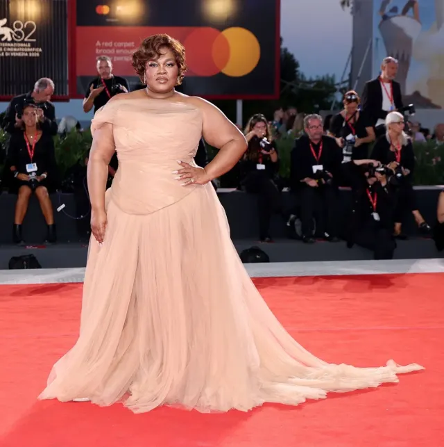 Da'Vine Joy Randolph в изготовленном на заказ платье от Alfredo Martínez, которое было похоже на любовное письмо старому голливудскому гламуру. Цвет румян - божественный. Силуэт сочетал в себе сказочную романтику с большим количеством серьезности для красной дорожки. Хотелось, чтобы корсет более органично сочетался с нежной юбкой из тюля, но эта мелкая придирка не отменяет того, как потрясающе она выглядела. Вдохновленное портретом итальянской иконы Джины Лоллобриджиды 1958 года, снятым Yousuf Karsh, это платье было данью истории кинематографа, и по этому показателю Да'Вин абсолютно точно справился с этой задачей. Элегантность, драматизм и шепот ностальгии — и все это в одном незабываемом моменте. Магия Венеции. Ювелирные украшения Chopard завершили ее образ.