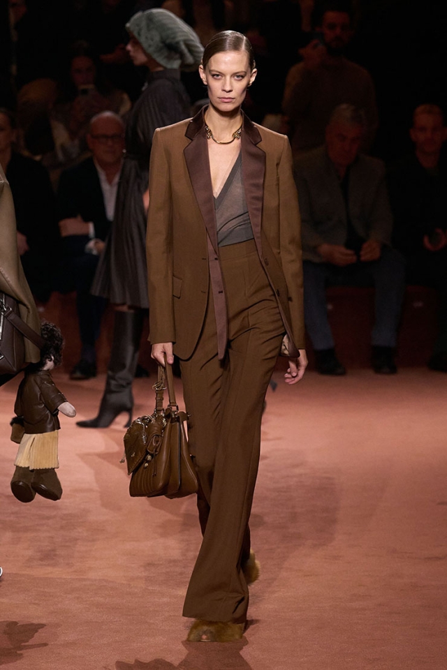 Noomi Rapace на фотосессии фильма "Mother" в однобортном костюме Fendi Fall 2025, который на первый взгляд мог бы считаться как классическая мужская одежда, но атласные боковые клапаны добавили современную остроту, которая мгновенно подняла пошив. Сочетание тонов придает образу особый шарм. И вот последний штрих: туфли-лодочки с принтом. Это такая маленькая деталь, но они привносят индивидуальность в образ. Это именно тот тип уверенной, строгой элегантности, который выделяет шведскую актрису в Венеции с самого первого дня.