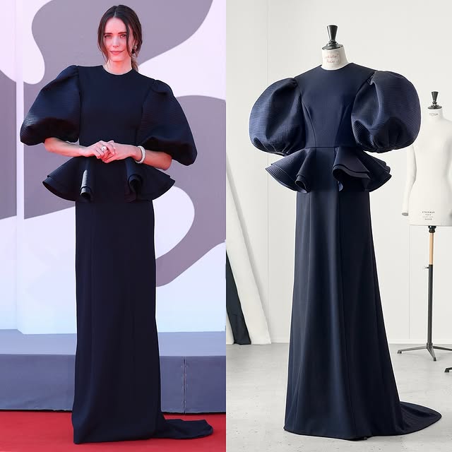 Stacy Martin, сохранив свои обязанности амбассадора Louis Vuitton, вышла в индивидуальном творении Nicolas Ghesquière. Платье вызвало дежавю — темно-синий, в пол, с рукавами-баллонами, как выход Alicia Vikander в Louis Vuitton. Платье без бретелек у Алисии было с легкой открытостью, в то время как версия Стейси более тяжелая с этими крупными рукавами. Вторая мысль заключалась в том, что этот дизайн читается скорее как «grande dame», чем свежая ingénue («наивная девушка»). Луи Виттон Высокое ювелирное искусство из коллекции Deep Time и гладкий низкий хвост завершили ее образ.