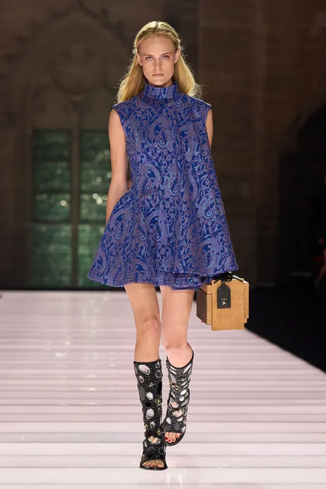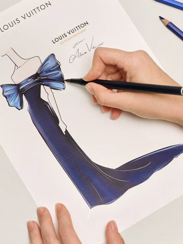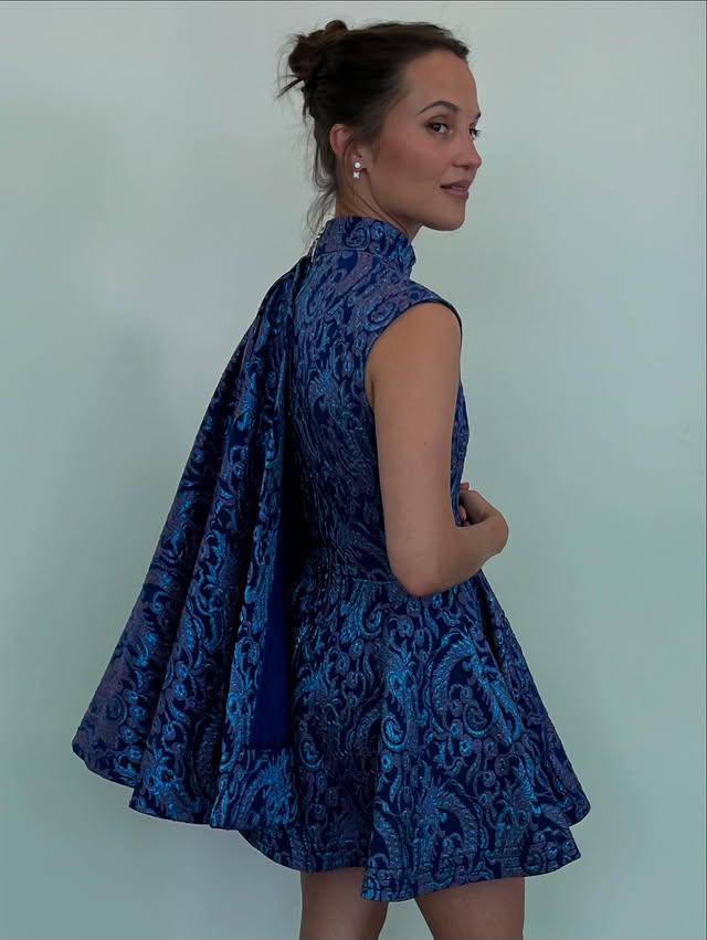 Alicia Vikander на фотоколле фильма ‘The Wizard of The Kremlin’ в синем жаккардовом платье без рукавов из коллекции Resort 2026 Louis Vuitton с плиссированной драпировкой, которая придала силуэту свежий, игривый вид. Это смело, это графично, и это идеально соответствует ее чувствам к моде. Лакированное серебро босоножек Louis Vuitton и нотка блеска из коллекции Высокого ювелирного искусства Дома связали все воедино.