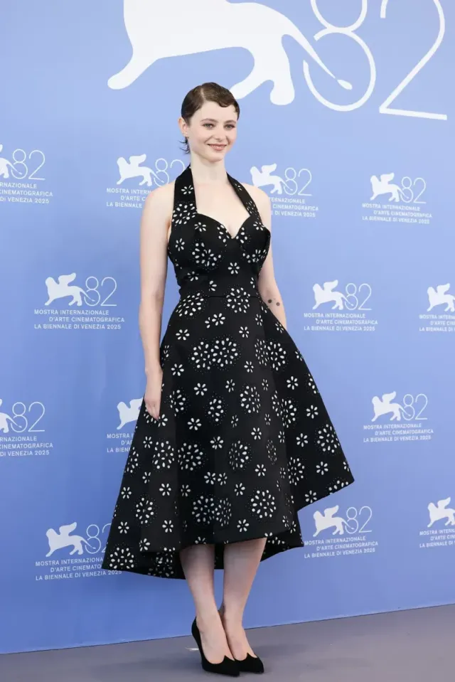 Thomasin McKenzie принесла волну ретро-очарования на фотосессии и премьере фильма «The Testament Of Ann Lee». С помощью двух совершенно разных образов она доказала, что игра с винтажными референсами не означает ощущение застрявших в прошлом — это может быть свежо, весело и идеально готово к фестивалю. Thomasin в кружевном платье Aleçon от Marc Jacobs, которое выглядело так, как будто оно вышло прямо из 1950-х годов. Вырез на груди, затянутая талия, пышная юбка — все это очень «New Look», но с дерзким ощущением благодаря цветочным вырезам. Туфли-лодочки Roger Vivier были классическими, но все равно эффект был молодым, игривым.