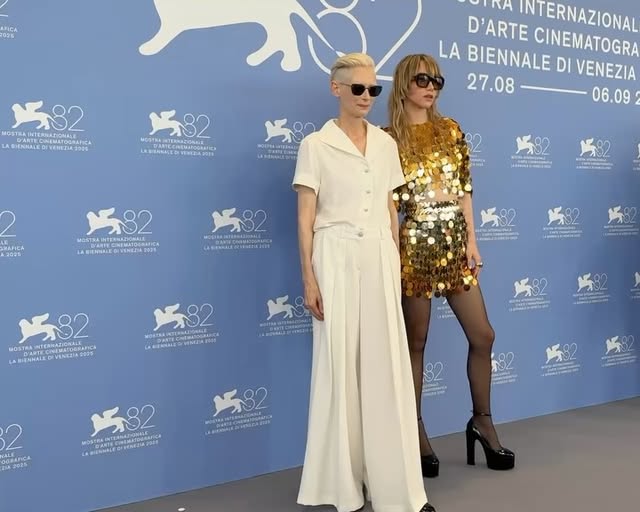 Бонька ездит на фестивали и все бестолку, даже тюнинг и сходство с Джоли не помогают. На совместном фото сразу посмотрела не на Сьюки в золотом наряде, а на Тильду в обычной рубашке и брюках.