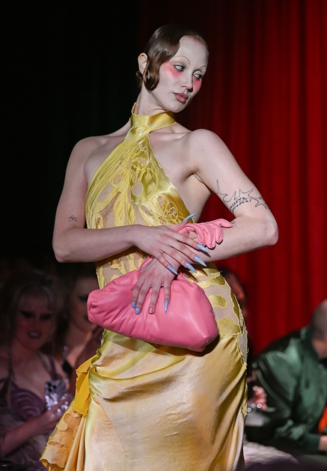 Нападки критиков на платье Холзи осуждаю - контрастные выходы. Конечно, корсетное платье легко представить на любом мероприятии, с тонким шелком не каждая справится. У жёлтого платья, даже на модели, слишком глубокая пройма, наряд "сползает" вниз, тонкая работа и драпировка пали жертвой кроя. Тем не менее, задумка ясна, Холзи молодец, владелицам марки удачи!