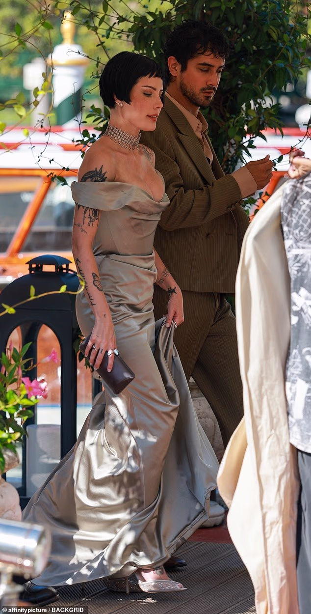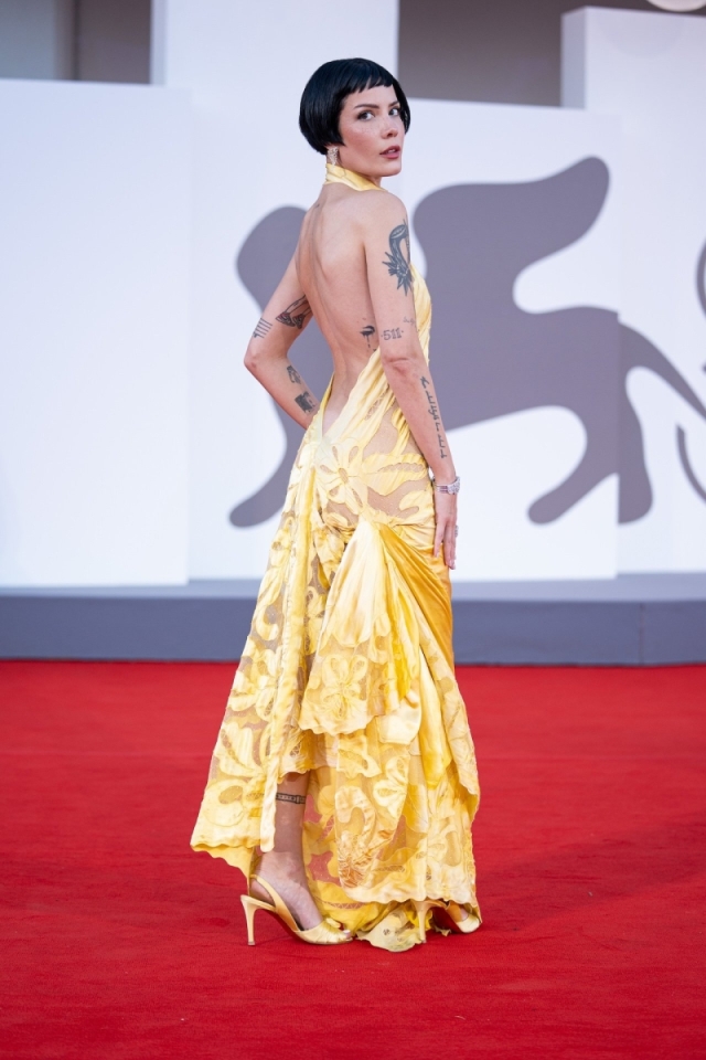 Мода явно была главным героем у Halsey в Венеции. Между потрясающим прибытием и сомнительным премьерным платьем, она показала две совершенно разные стороны красной дорожки. Прибыв в отель Excelsior Хэлси напомнила всем, почему платья Vivienne Westwood вечны. Она привлекла к себе внимание, позируя в серебристом атласном платье с открытыми плечами и корсетным лифом. Этот корсет был чисто вествудским — структурированным, но романтичным, вечным, не скучным. Платье было дополнено подчеркивающими достоинства рюшами, и она сочетала его с серебристыми сетчатыми туфлями на шпильке. Возможно, это было немного драматично для прибытия в дневное время, но очень эффектно.