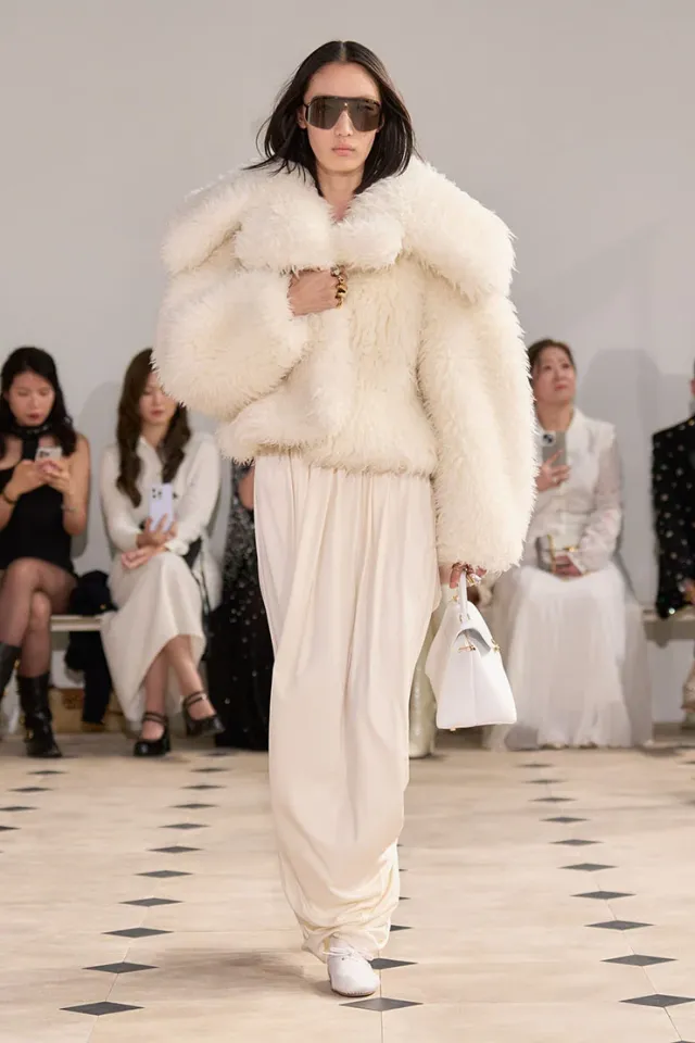 Shailene Woodley вернулась на Венецианский кинофестиваль во второй раз, продвигая фильм «Motor City», подарив два совершенно разных стиля. Для дневного образа она надела ансамбль цвета слоновой кости Celine Spring 2026, увенчанный забавной меховой курткой. Даже в конце лета кажется, что этот жакет принадлежит другому сезону, и, по правде говоря, драпированное платье под ним тоже не совсем привлекательное. Трудно отнестись к этому образу всерьез и, вероятно, это отсылка к фильму 1970-х годов, который она рекламирует.