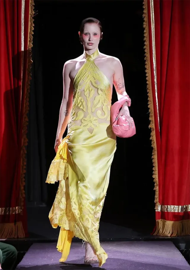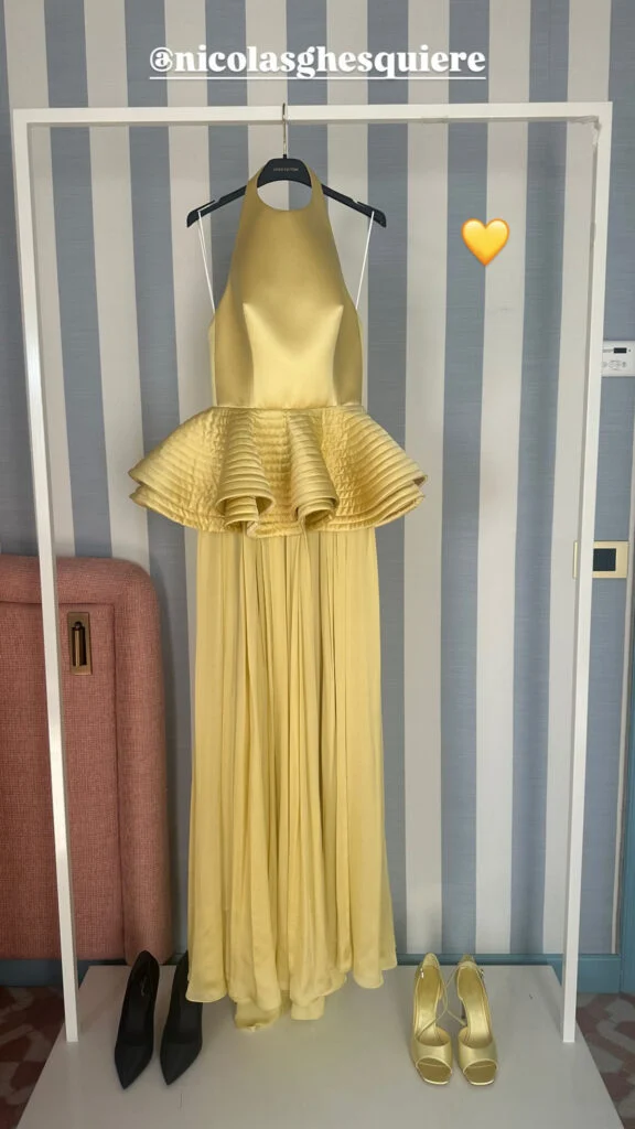 На премьере фильма ‘Duse’ в сливочно-желтом шелковом стейч-платье Louis Vuitton, которое казалось редким драгоценным камнем. Топ-пеплум и юбка из муслина подчеркнули силуэт с архитектурной точностью. Дерзкая обнаженная спина добавила чувственную и современную ноту. Это была французская утонченность, погруженная в солнечный свет. Выбирая это скульптурное платье, Ноэми воплотила яркий, смелый и глубоко женственный стиль.
