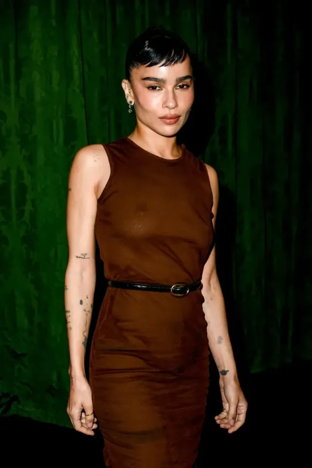 Zoë Kravitz в Париже на показе Saint Laurent Fall 2024 в похожем платье.