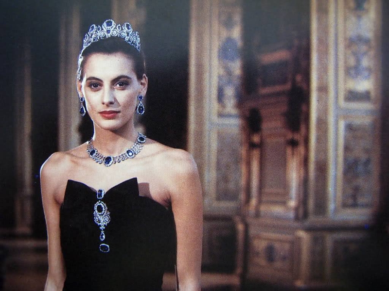 Bijou_, Инес Де ля Фрессанж была последней, кто надевал парюру королевы Гортензии, украденной недавно из Лувра. В 1986 году Лувр дал особое разрешение использовать украшения для съемки. Фото сделал Карл Лагерфельд, и оно стало настолько культовым, что Лувр печатал его на официальных открытках музея.