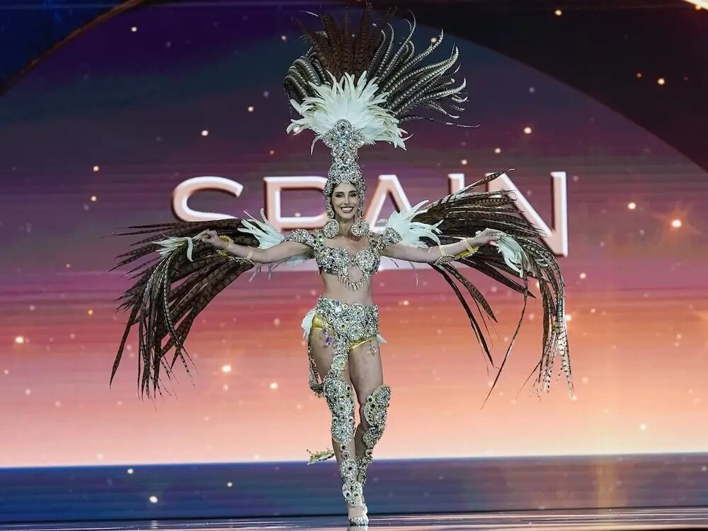 Мисс Испания Андреа Валеро отдала дань уважения исчезающему виду животных. 28-летняя девушка вышла на сцену в блестящем бюстгальтере-бралетте с короткими рукавами, шортах с высокой талией, кристальной цепочке и сапогах выше колена, украшенных такими же пайетками. В качестве аксессуаров она носила крылья из перьев и головной убор с пайетками и перьями. Наряд был вдохновлен канарской птицей хубара, которая находится под угрозой исчезновения, но вносит большой вклад в биоразнообразие Испании. Валеро управляет собственным туристическим агентством и является сторонницей расширения прав и возможностей женщин.