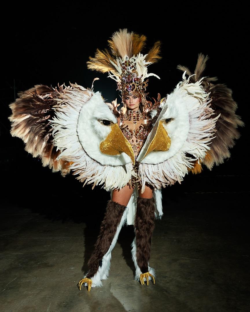 Мисс США Одри Экерт воплотила дух белоголового орлана, нарядившись в костюм национальной птицы Америки. Она была одета в прозрачный боди из кристаллов, пушистые коричневые сапоги, большие крылья с перьями и накладки на руки, которые вместе создавали лицо орлана. Бисерная вышивка была вдохновлена искусством коренных народов, а общий образ был призван продемонстрировать наследие и надежду. Экерт работает координатором по социальным сетям и маркетингу в правозащитной модной компании Sapahn, базирующейся в Таиланде.