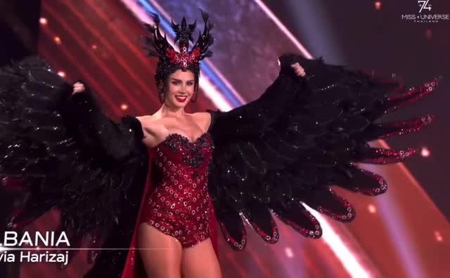 Мисс Албания Флавия Харизадж в костюме, показывающим часть истории страны. Каждая деталь, каждый цвет и каждый элемент этого наряда отражают корни участницы, ее культуру. Этот костюм напоминает о албанской силе, элегантности и традициях.