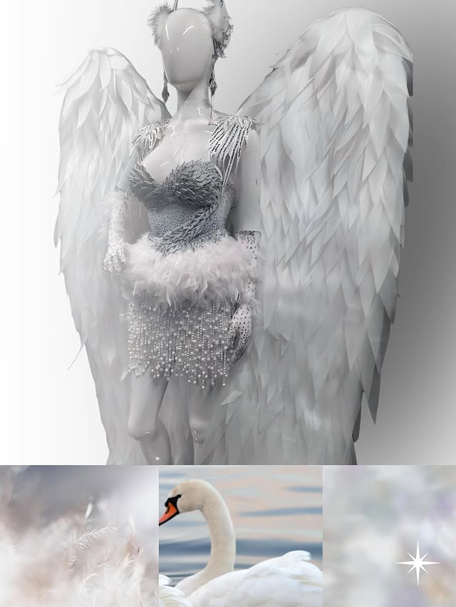 Мисс Дания Моник Сонне в костюме «Белый лебедь». Национальный костюм Моник вдохновлён одним из самых вечных символов красоты и возрождения в мире: Белым лебедем. Опираясь на эфирную элегантность датских озёр и их глубокую связь с легендарной сказкой Ханса Кристиана Андерсена «Гадкий утёнок», ансамбль показывает историю самопознания, стойкости и смелости. Костюм с изысканным лифом, украшенным тысячами вручную пришитых кристаллов и перьев, отражающих светящийся блеск лебедя, скользящего по воде на рассвете. Струящиеся белые шелковые слои нашиты как нежные крылья, создавая иллюзию движения с каждым шагом. В основе этого творения лежит символизм: лебедь как национальная птица Дании, символизирующая чистоту, преображение и внутреннюю красоту. Дизайн также тонко отсылает к скандинавскому минимализму и современной моде, сочетая мифы и элегантность в идеальной гармонии. И она выходила под музыку из "Лебединого озера".