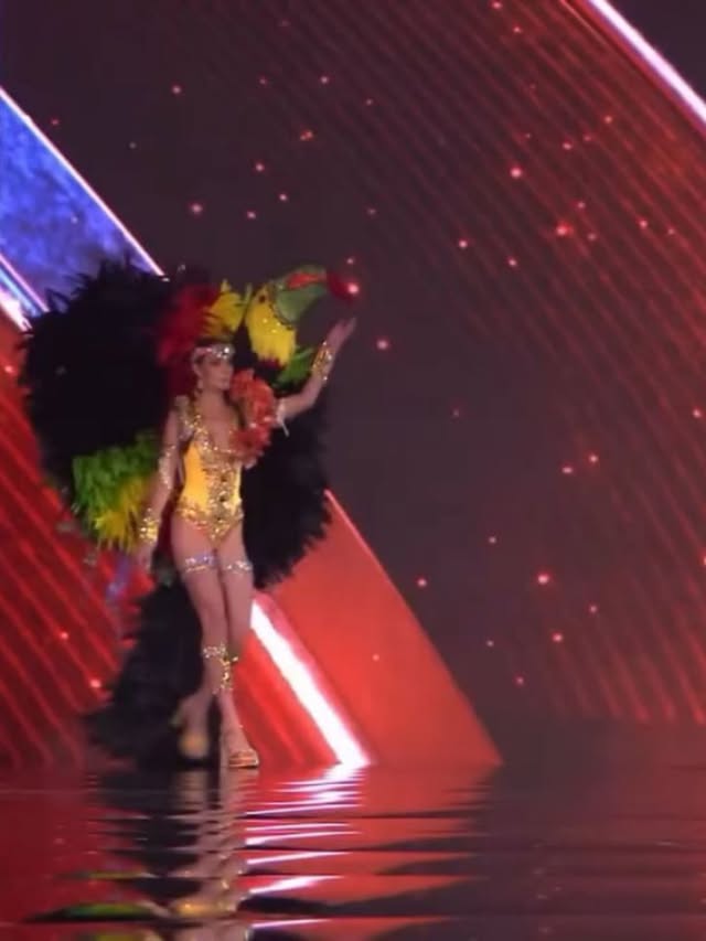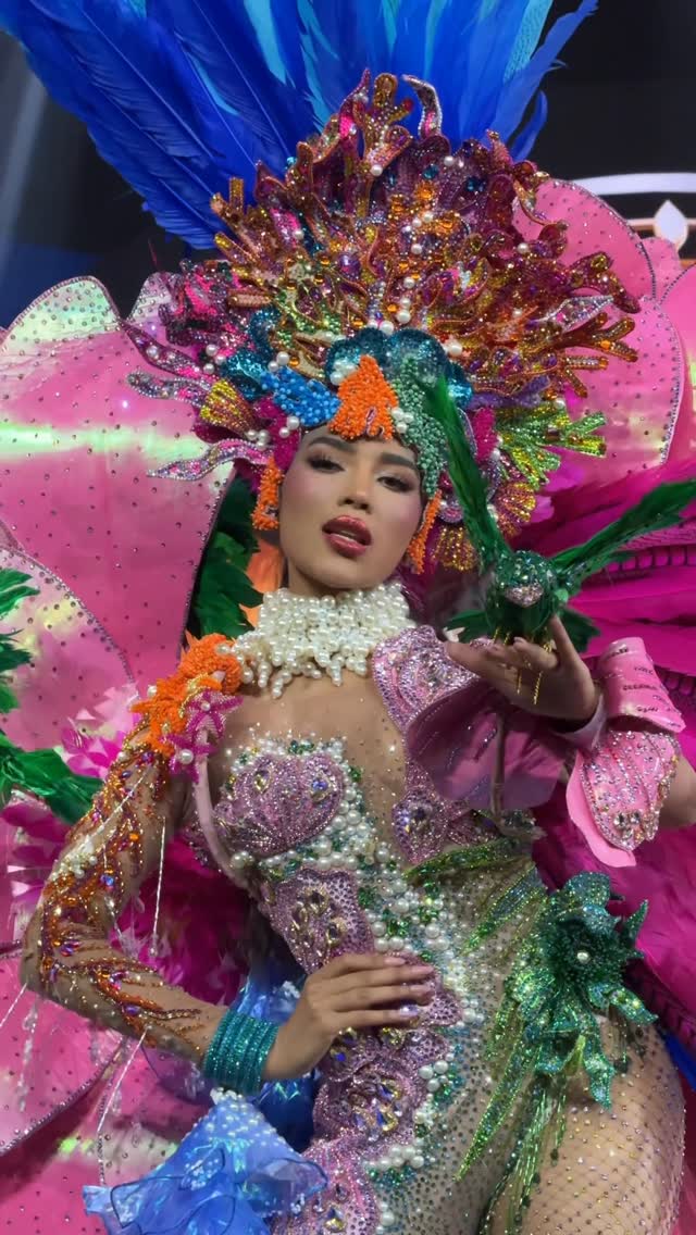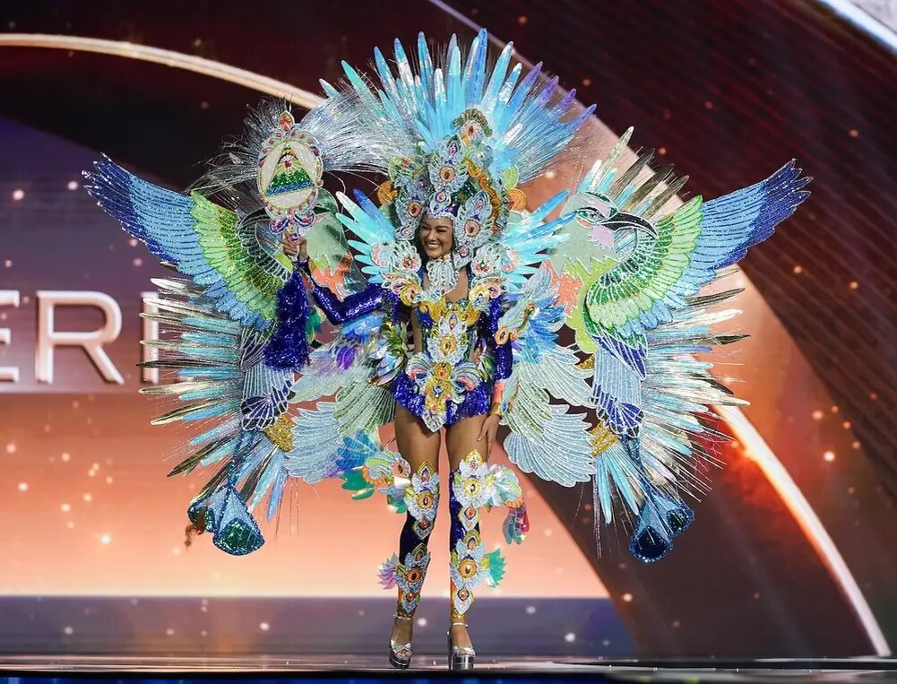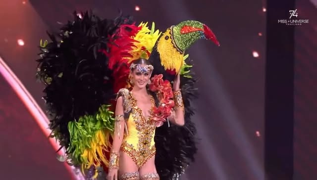 Мисс Белиз Изабелла Забане украсила сцену в захватывающем костюме, вдохновленном национальной птицей Белиза - ярким Килем-Билледом Туканом. Смелый, блестящий и полный белизской гордости, ее костюм воплотил в жизнь тропическую красоту, прославляя цвета, культуру и дух драгоценностей страны. Она показала костюм с изяществом, силой и гордостью.