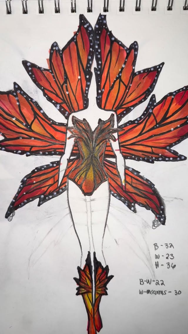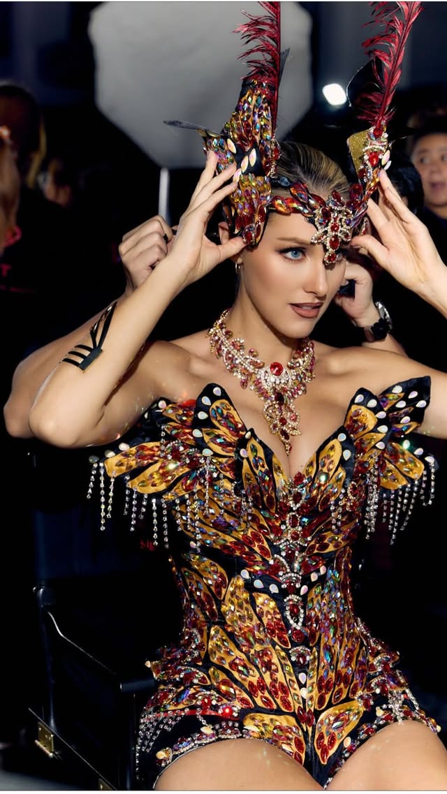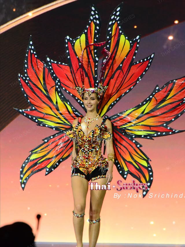 Мисс Канада Джейми Ванденберг представила сердце и дух своей родины. Национальный костюм Канады в величественной форме кленового листа, замысловато узорчатого в крыльях бабочки монарха - одной из самых известных бабочек Северной Америки. Кленовый лист в сердце флага Канады является символом единства, силы и национальной гордости. Бабочка-монарх начинает свой полет в Канаде и мигрирует на юг, символизируя устойчивость, трансформацию и связь через границы. Образ бабочки монарха выбран в качестве любовного письма в Мексику - показав связь между двумя странами через этот мощный символ миграции, обновления и общей красоты. Костюм Канады воплощает в себе эффект бабочки — вера в то, что даже самые маленькие акты доброты могут вызвать волны глобальных изменений. Ее костюм - дань состраданию, мужеству и красоте роста, напоминая нам всем, что «когда доброта Канады взлетит, мы все можем распространять надежду и свет».