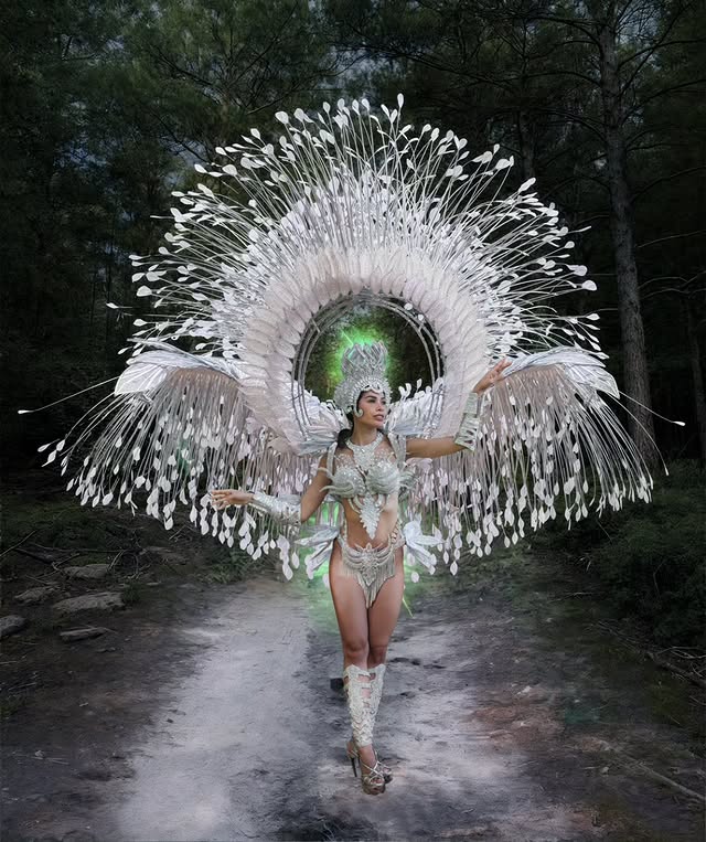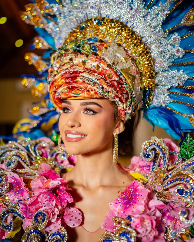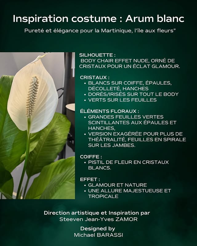 Мисс Мартиника Селия Абатуччи в костюме, который олицетворял белую лилию арум - это безупречный и драгоценный цветок, символ чистоты и стойкости, лелеемый душами Martinique. Этот костюм - не только украшение, это яркая дань, визуальная и историческая ода родной земле.