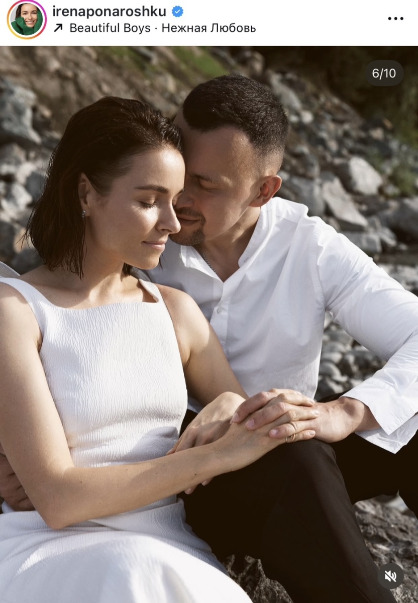 На видео блогерша обнимает мужа и танцует с ним среди сверкающих янтарных панелей.