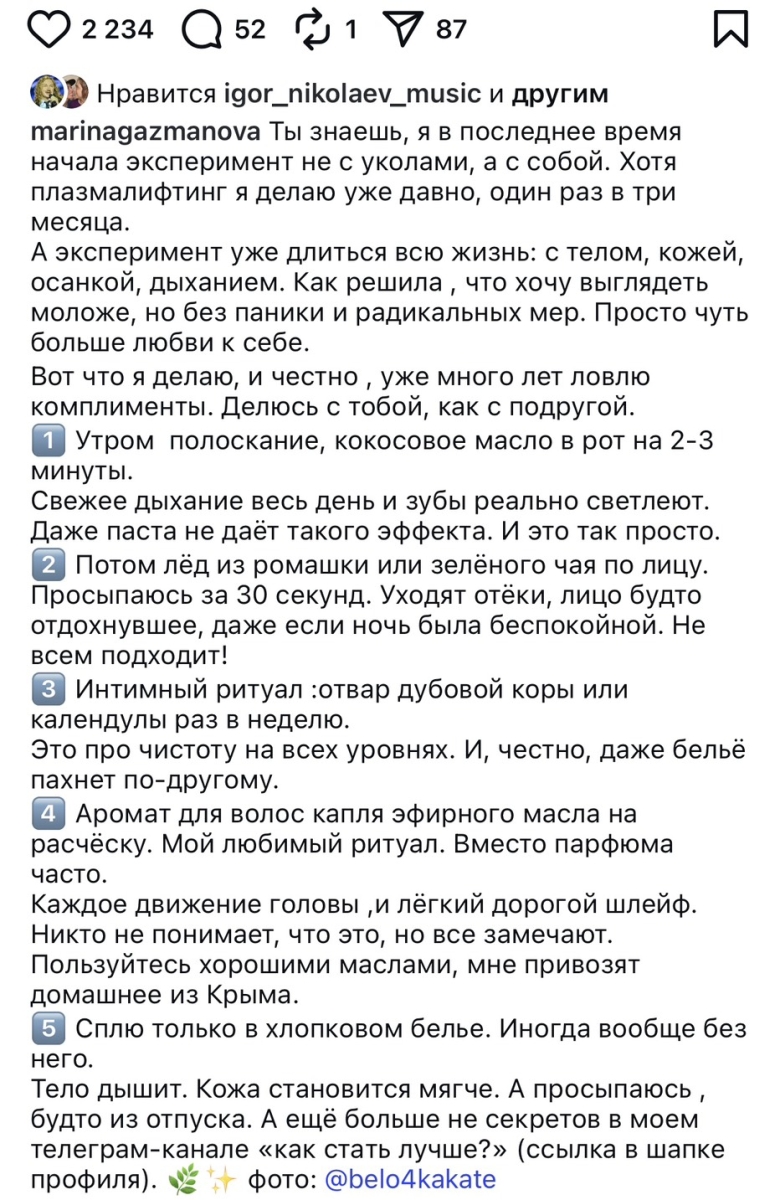 От поста Газмановой повеяло статьями в журнале Кул гёрл 00-х