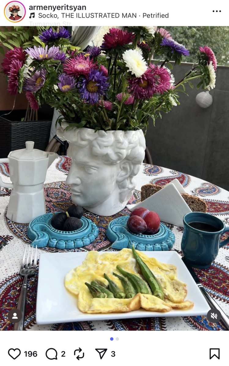 Армен редкостный пакостник: одним щелчком низвергает завтрак Рудковской :) Всё-таки завтраки Армена - это отдельный вид искусства. Сразу хочется купить красивой посуды и тоже что-нибудь красивое и интересное себе сервировать.