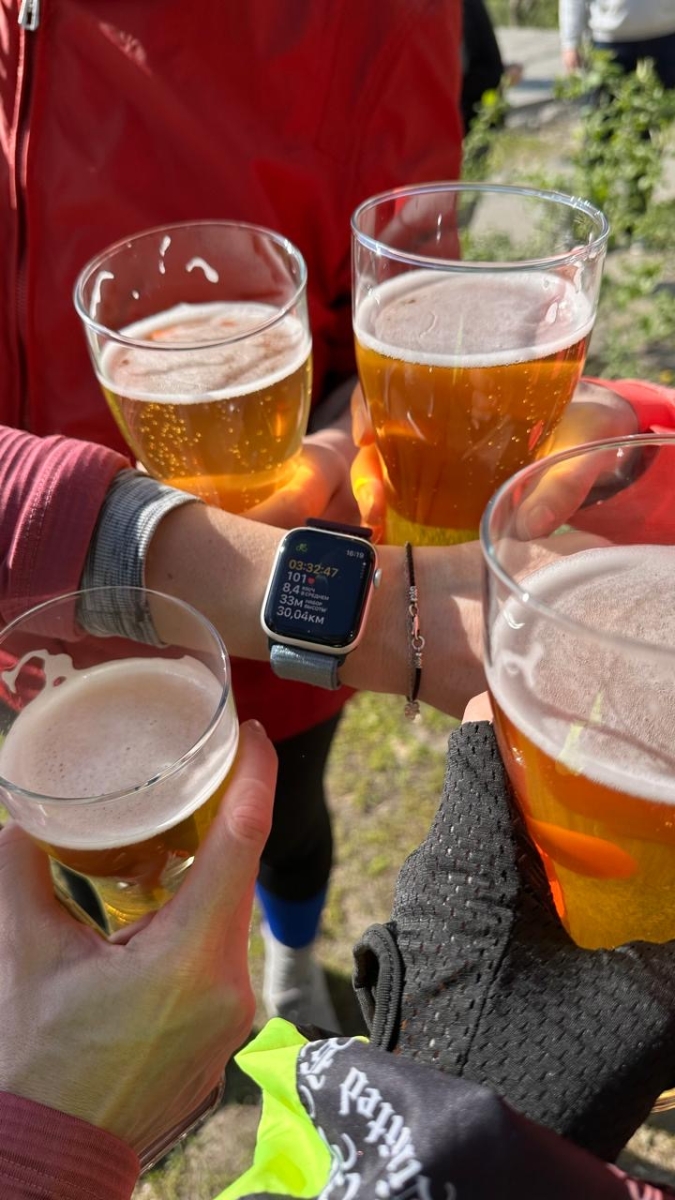 На финише было испито хлебное игристое, исключительно в качестве изотоника. Вошло, как в сухую землю)