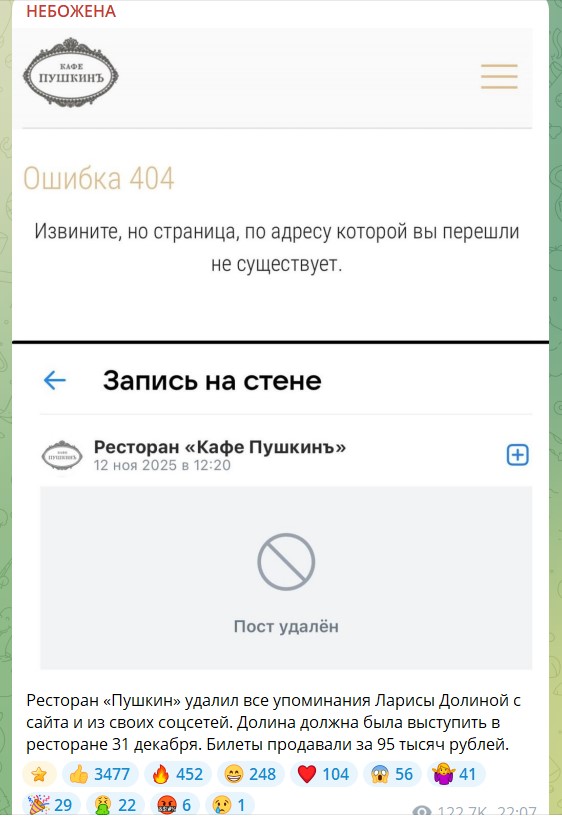 Зашла в инстаграм - каждая козявка и ко сообщает, что не обслужит Долину. Как у нас любят буллить. Нет слов, точнее - мерзость.