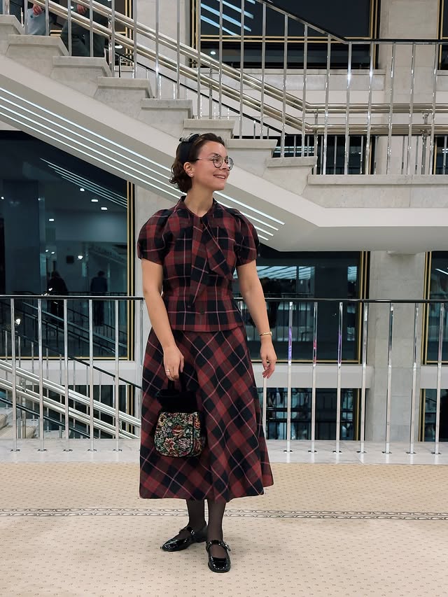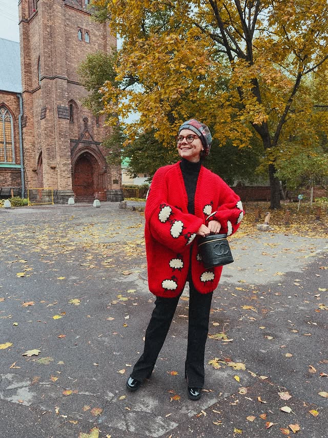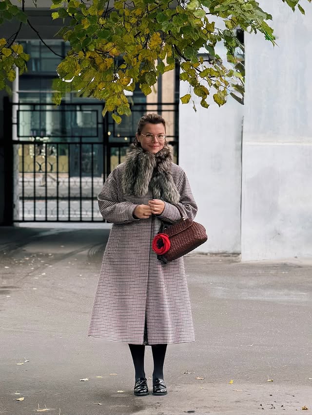 Понравились образы с красной сумкой и в костюме. В клетчатом пальто с горжеткой и красной кофте старообразно как всегда смотрится. кажется Бруххильда фотошопит обычное лицо в прекрасное.