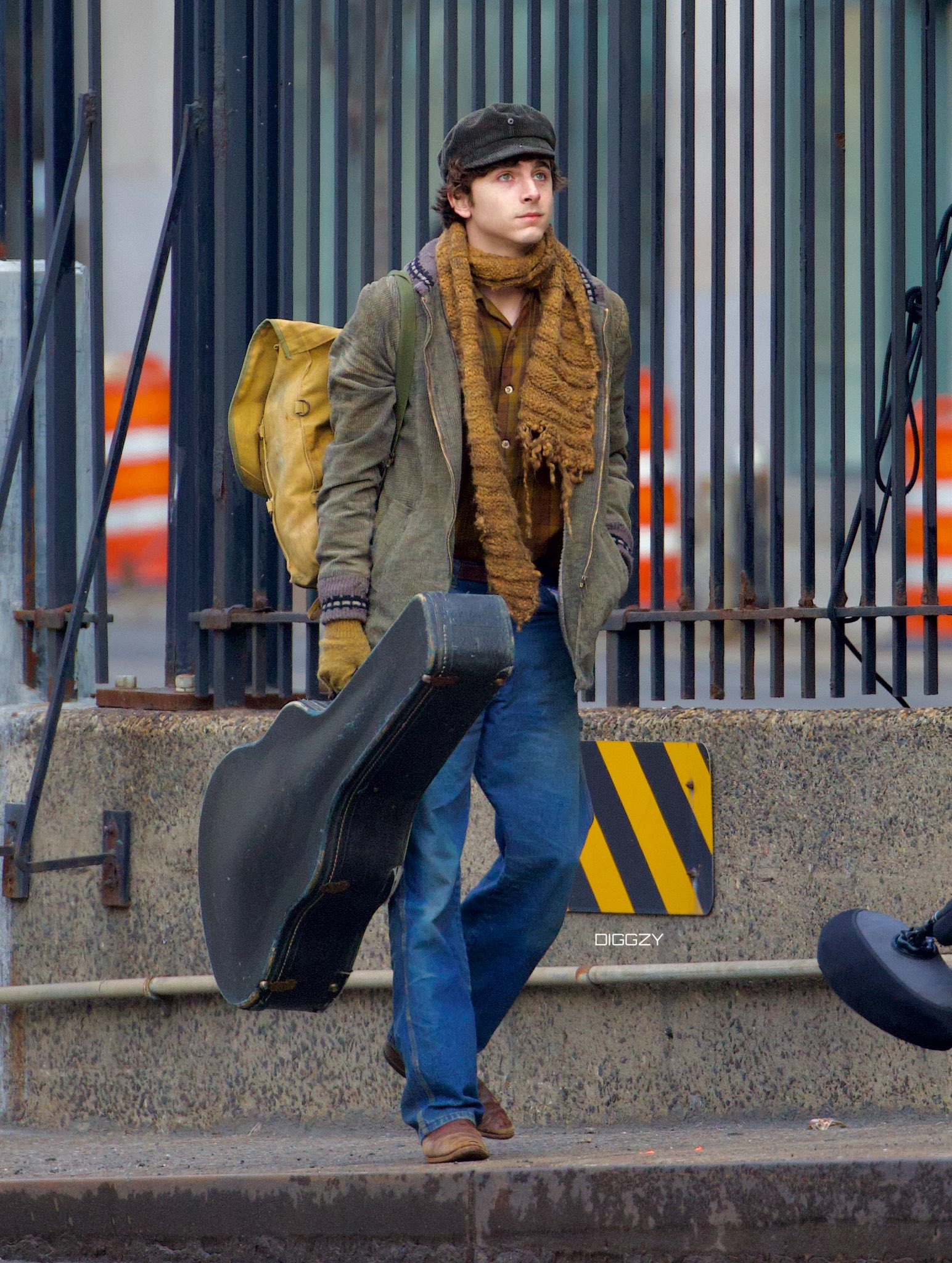 Тимоти Шаламе на съёмках байопика о Бобе Дилане