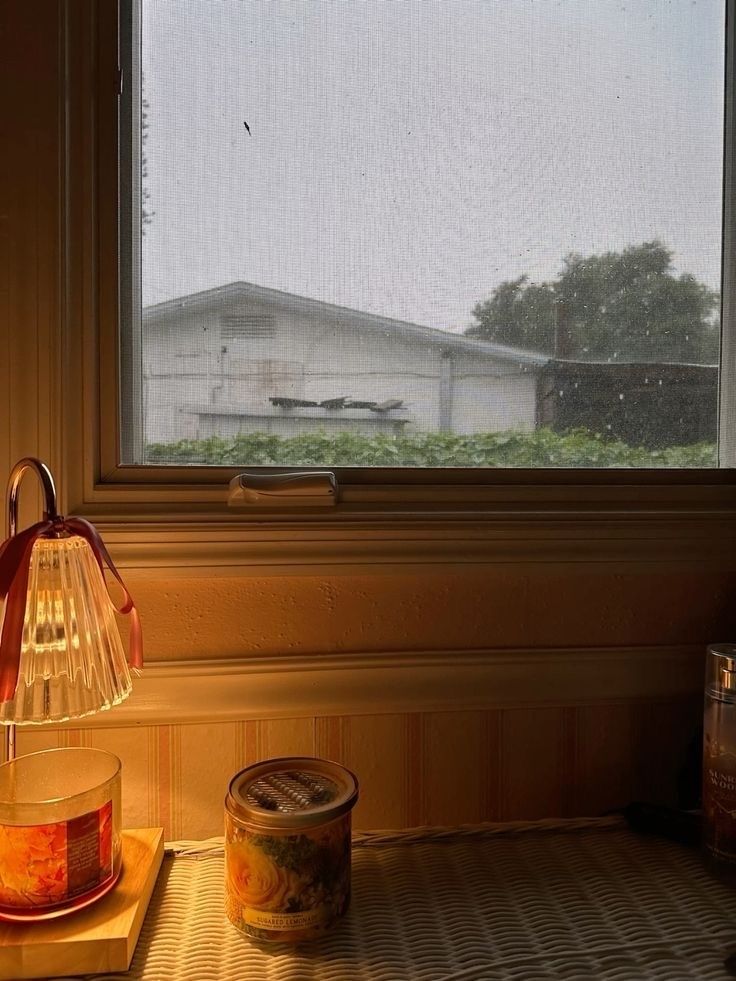 У нас льет дождь и порывы ветра... Но для меня это все равно начало уютного осеннего =)