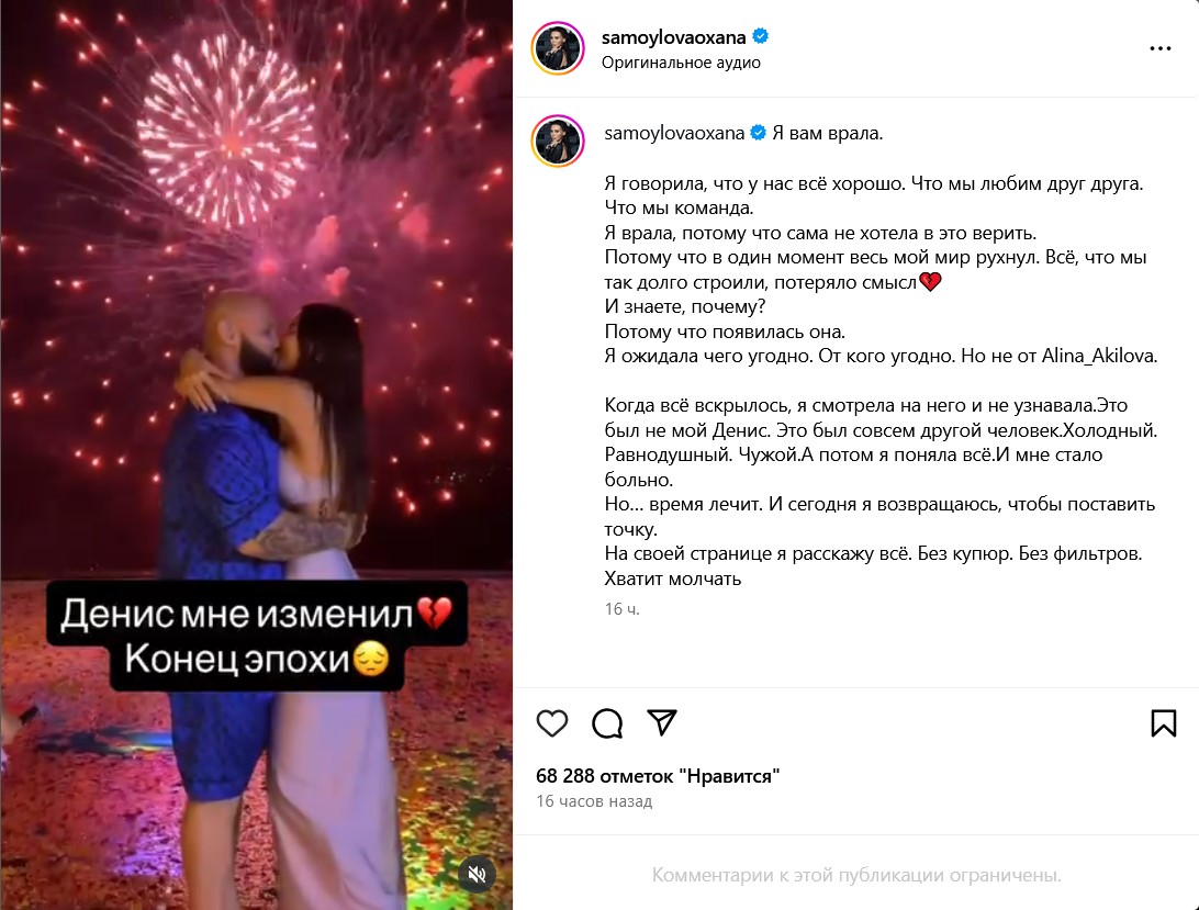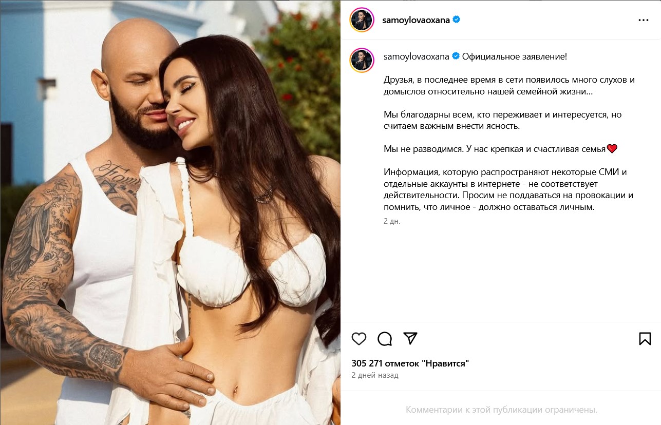 Реально разводятся? Терпение Оксаны закончилось и она просто по инерции пыталась рисовать красивую картинку в соцсетях, но все же сломалась? Последние события указывают на это...