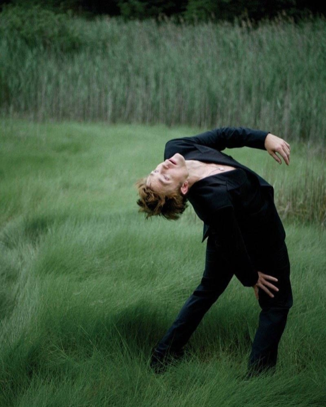 На снимках Райана МакГинли Паттинсон предстаёт среди полей и зарослей, в испачканном грязью костюме Dior, с распахнутой рубашкой на ветру. Он балансирует на грани изысканности и естественности, напоминая о том, что даже амбассадор Dior может выглядеть диким на фоне природы.