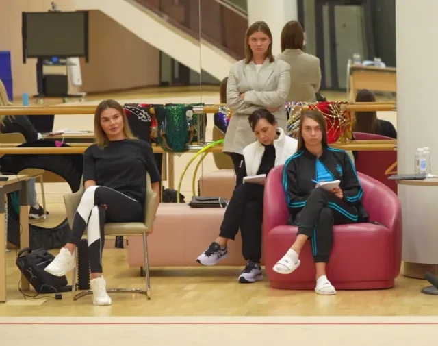 Алина Кабаева посетила тренировку в Академии художественной гимнастики «Небесная грация», которой руководит.