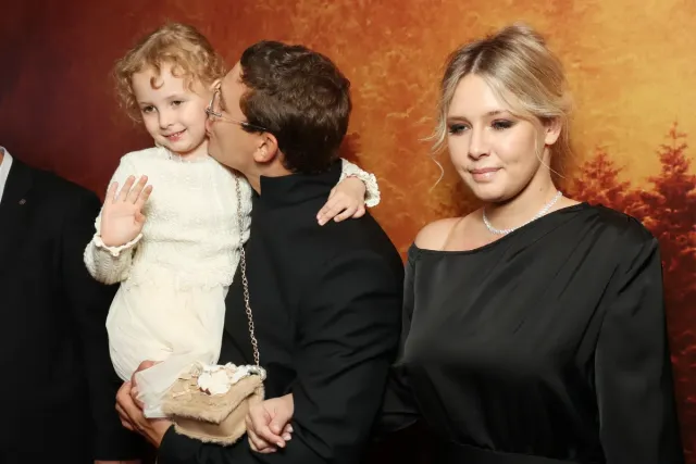 Никита Кологривый на премьере фильма «Август» с экс-возлюбленной Александриной Питиримовой и их общей четырехлетней дочерью Есенией.
